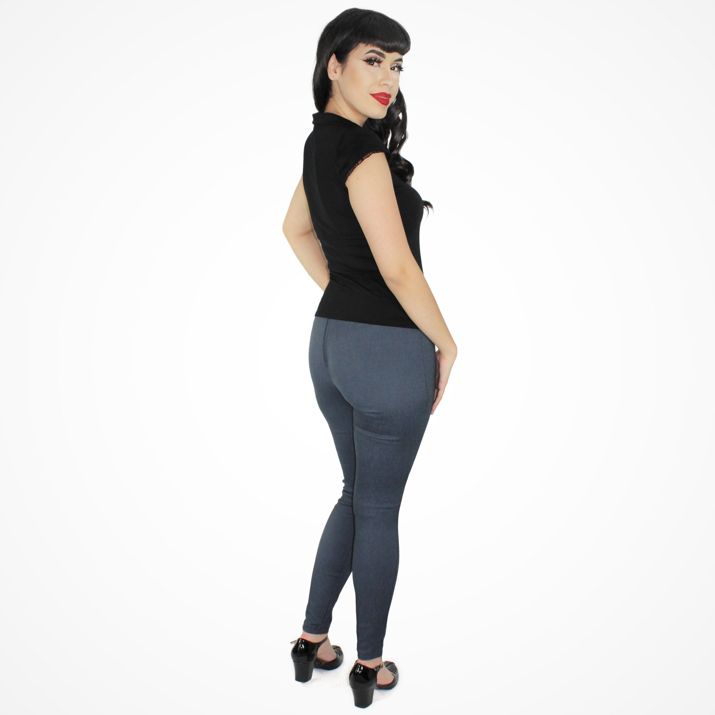 The modest top features a small collar, snaps, cap sleeves, a white detail at the front surrounded by black lace, lace at the sleeves, and best of all an ultra soft black material. Enjoy!