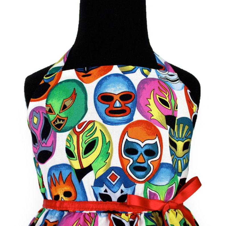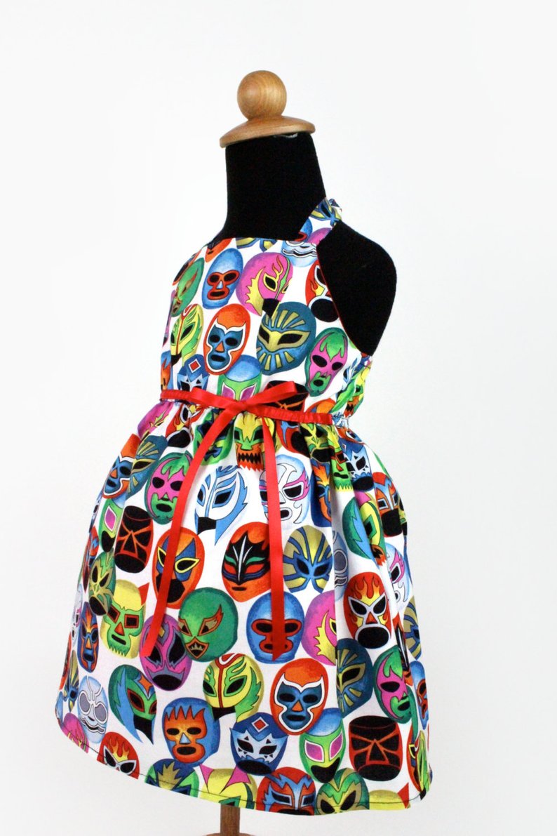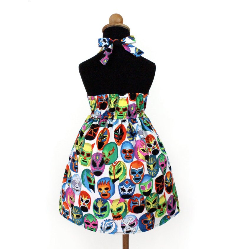 The dress comes with elastic on the waist and on the back, making it a comfortable fit for all ages and sizes.This dress is filled with Luchador Mascaras Print.The Red ribbon gives it that extra Punch of color. The vibrant colors make it an easy dress to match with you favorite cardigan. Paired with a cute pair of flats, sandals or boots ... it's the perfect casual outfit .