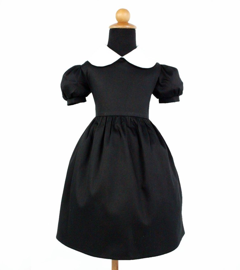 This is our new adorable Girls Wednesday Adams Inspired Dress! Perfect for your little girl. The collar and sleeves on this black dress provide the classic vintage inspired look. It can be worn with some leggings and boots for an adorable winter look or some shiny festive shoes. One things for sure, your little lady will be ready for all of the holiday gatherings with this fashionable dress!