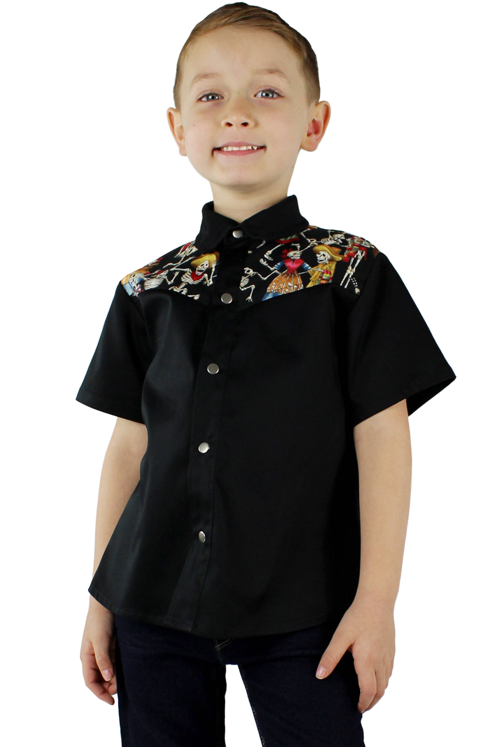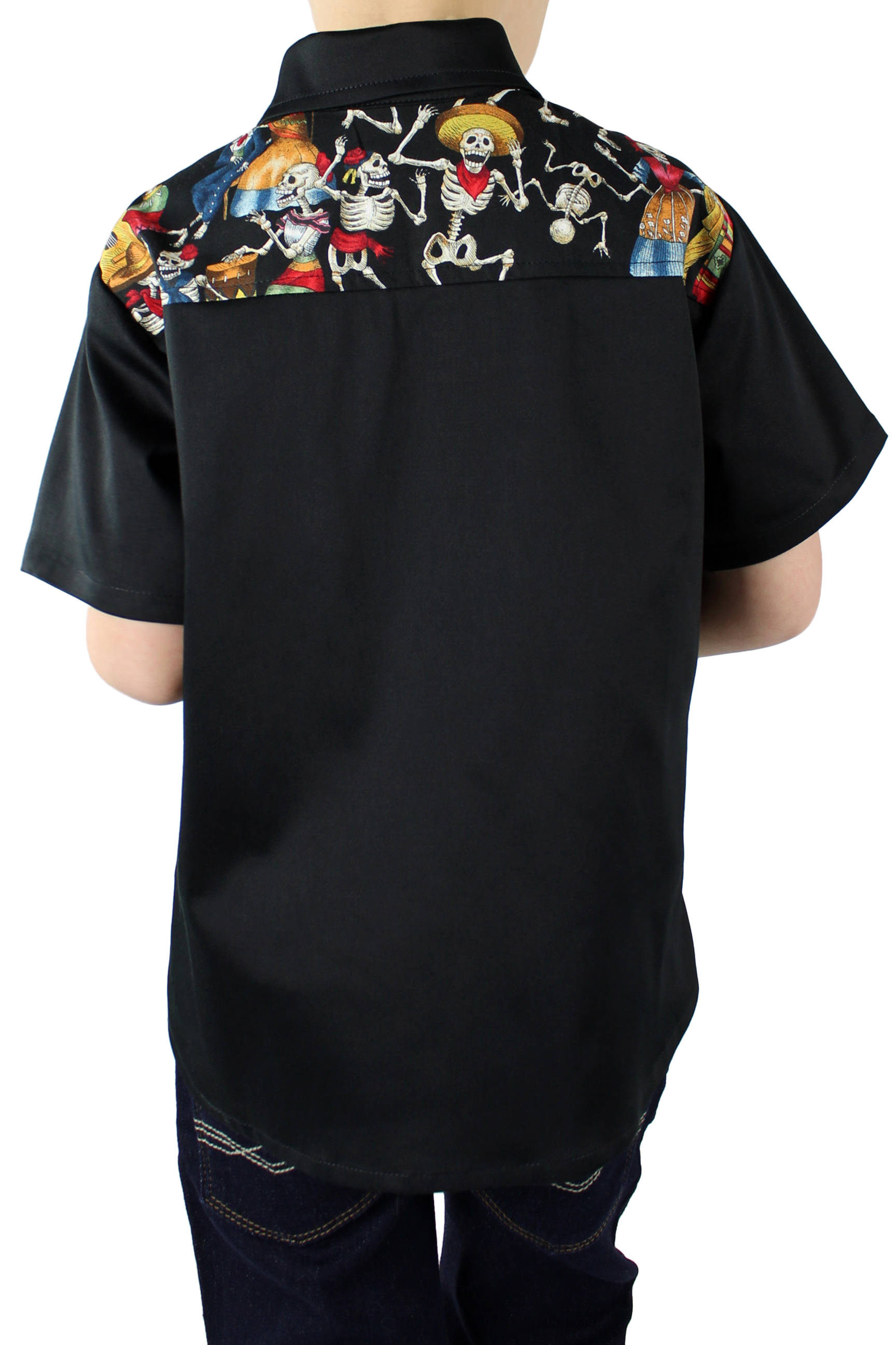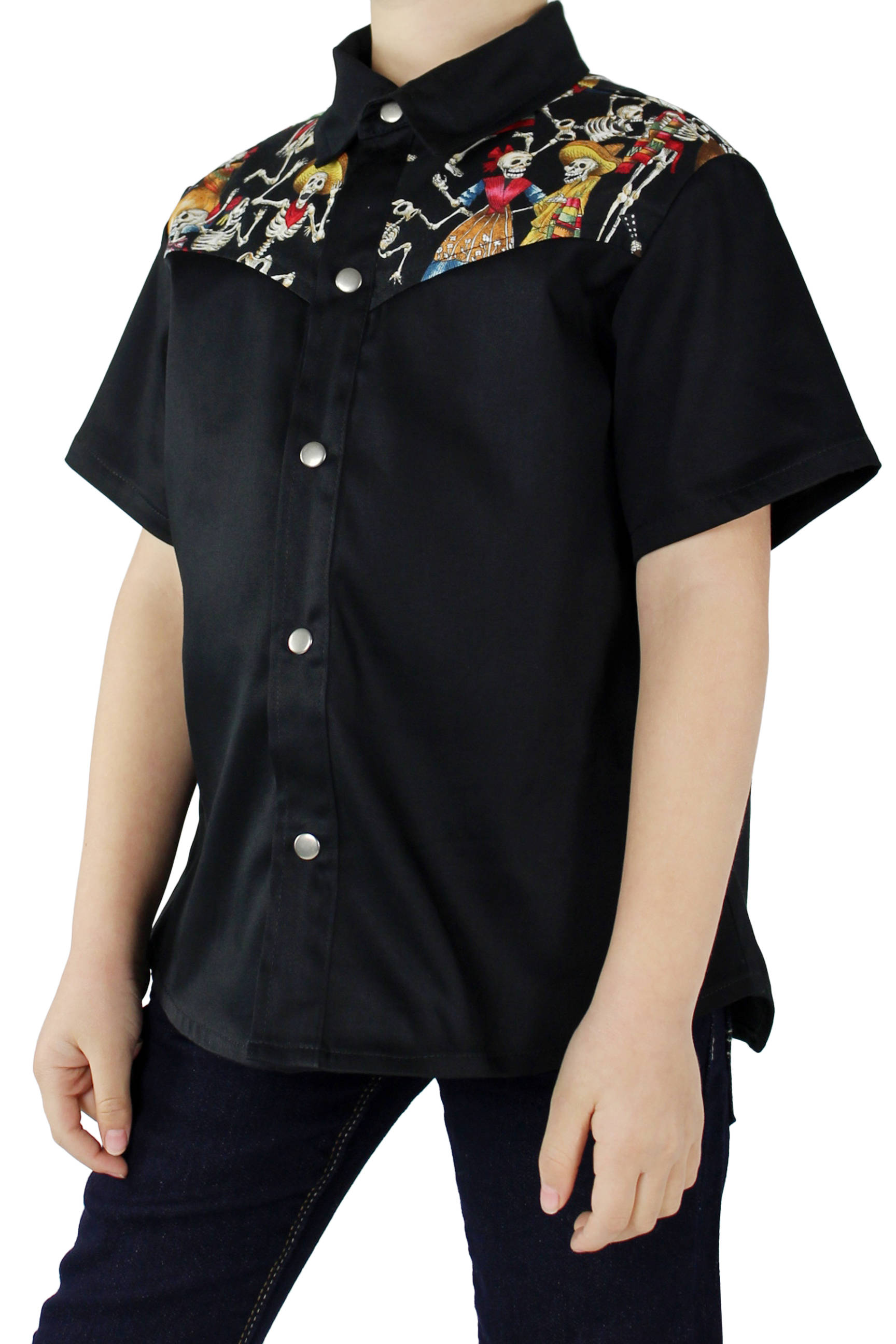 Enjoy this one of a kind snap top with Day of the Dead imagery. Edgy, fun, and daring for the edgy child in the family.