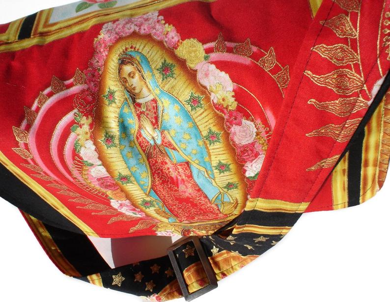 Vivid Guadalupe Virgin Mary images messenger purse with adjustable handles for a comfortable fit for varying sizes.