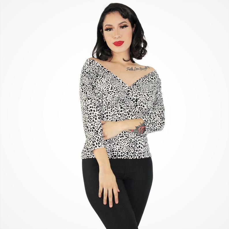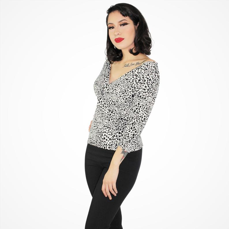 Dalmation Three Quarter Sleeve Overlap Top - XS-2X