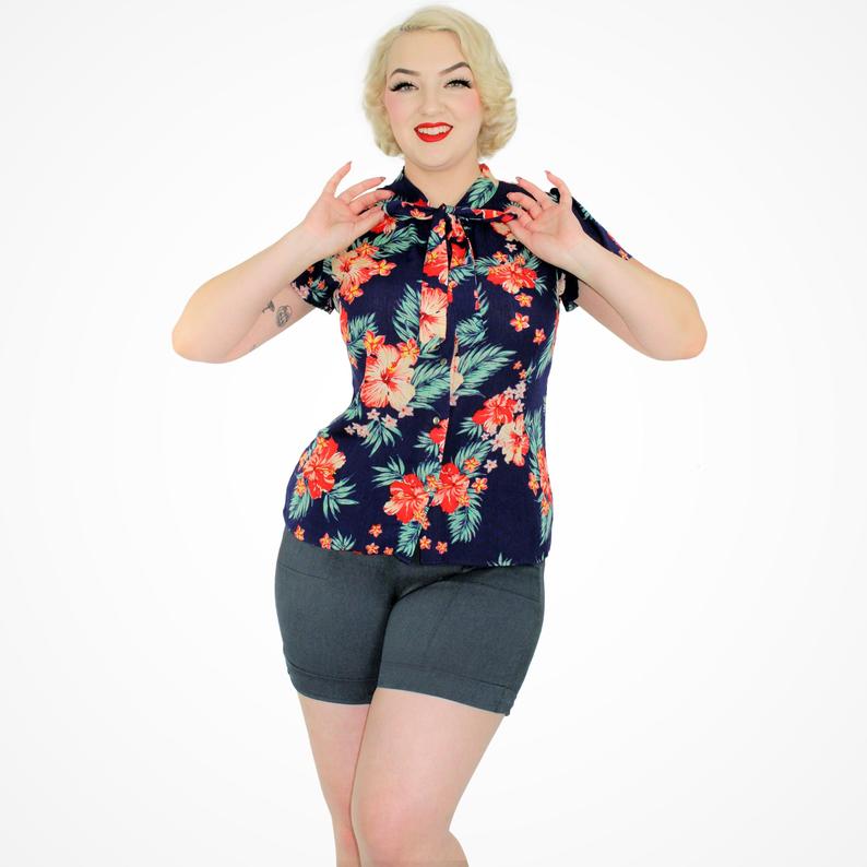 Floral Tropical Top - Navy XS-3XL