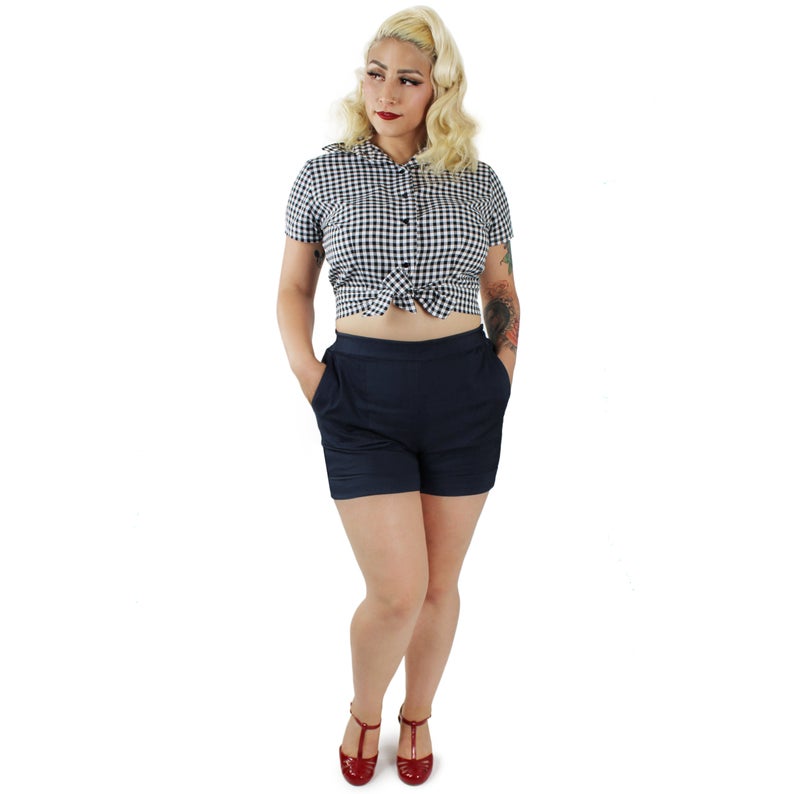 Just in time for the summer, these shorts will be a fun addition to your wardrobe! These retro inspired shorts are made for one retro gal with a sassy vibe.