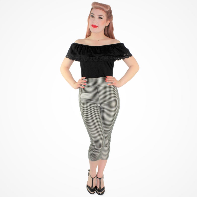 Flirty, fun, and comfortable! Pair this amazing off the shoulder top with indigo blue, black, and fun prints. It features an elastic to hug both shoulders, a flirty flap all around, scalloped lace as fringe, and medium lenght to tuck in or leave as is.