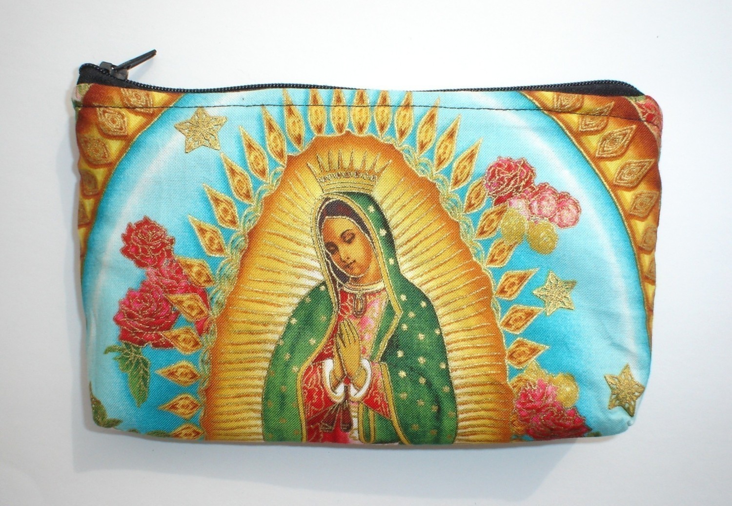 Mexican Virgin Mary Guadalupe wallet coin purse rockabilly- w/zipper Big enough 4 Make-up